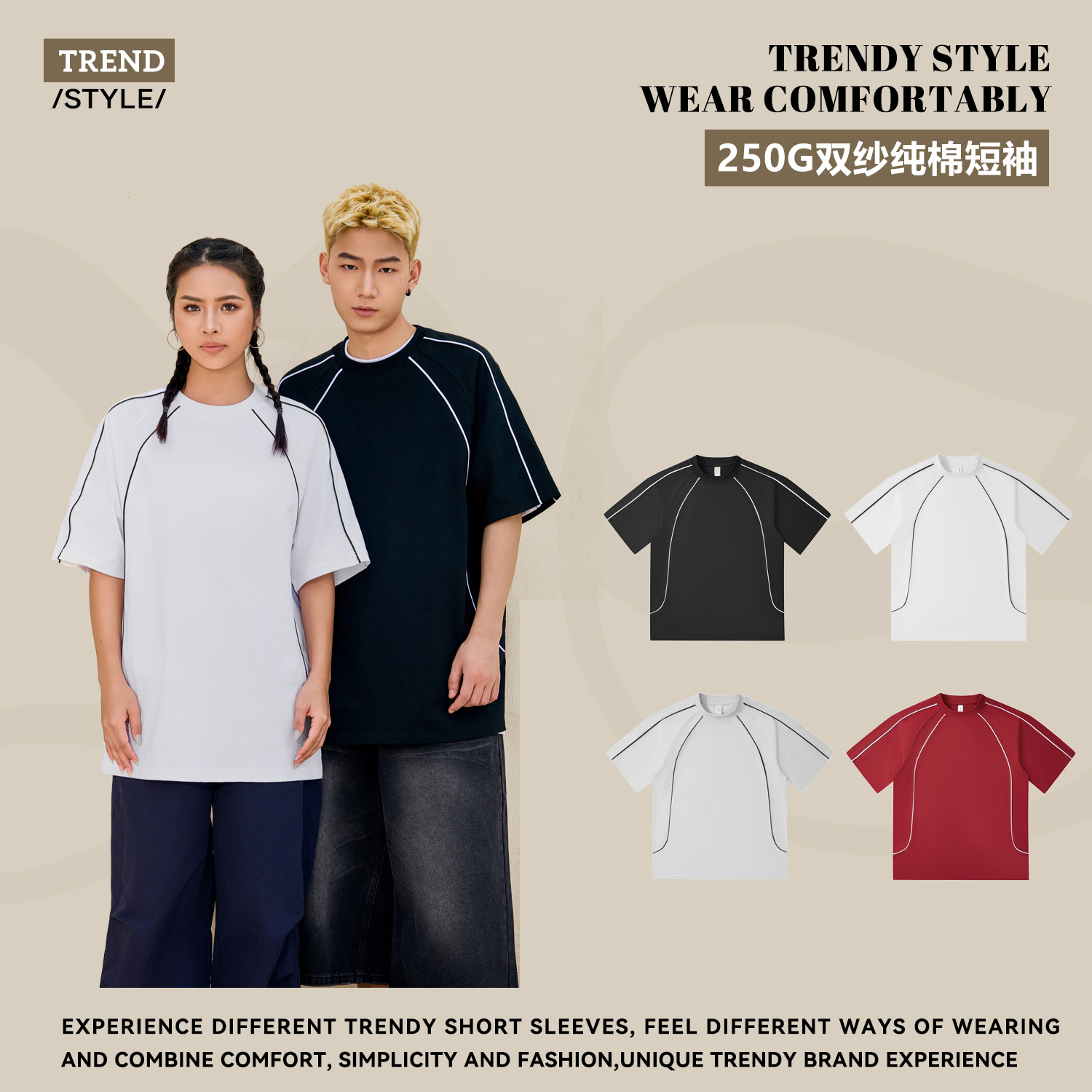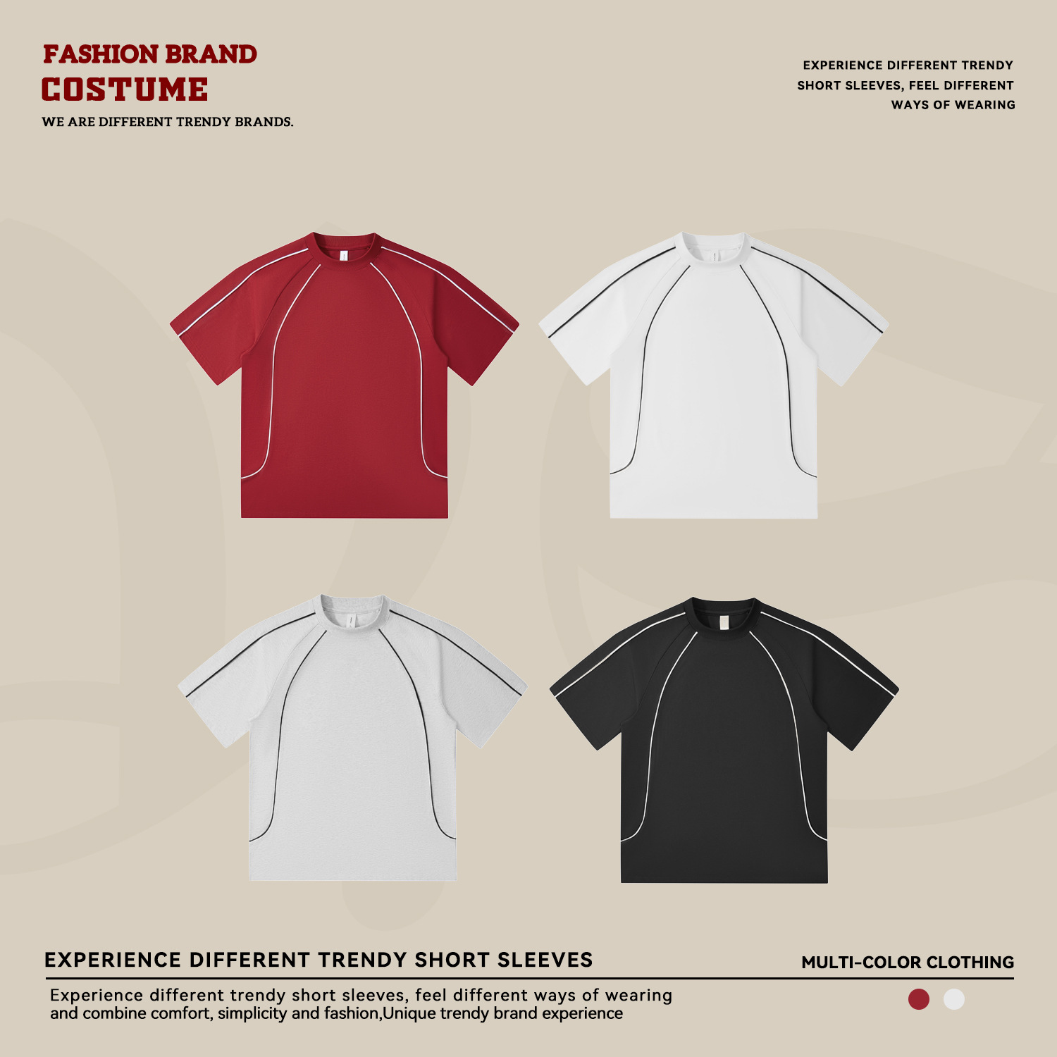 Летний вес 250G изогнутые линии дизайн с круглым вырезом с половиной рукава футболка мужской американский ретро минималистский дикий топ