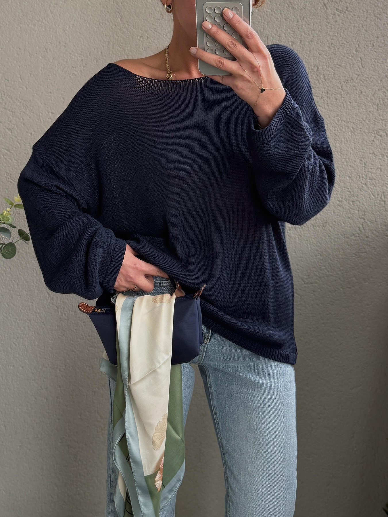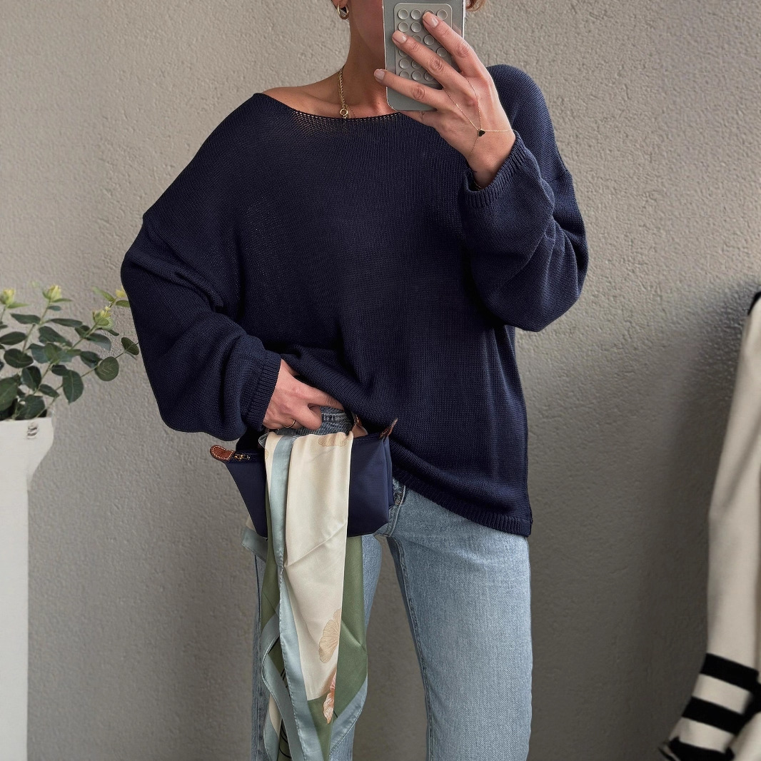 Главная страница > Новый женский модный и элегантный пуловер, трикотаж чистого цвета, свободный милый трикотаж с круглым вырезом, трикотаж для женщин