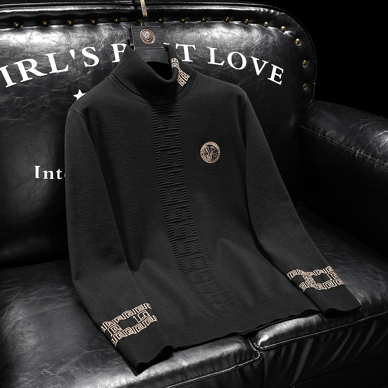 Главная страница > Мужской свитер из шерсти в корейском стиле, облегающий, с отложным воротником, утепленный, на осень-зиму 2025 года