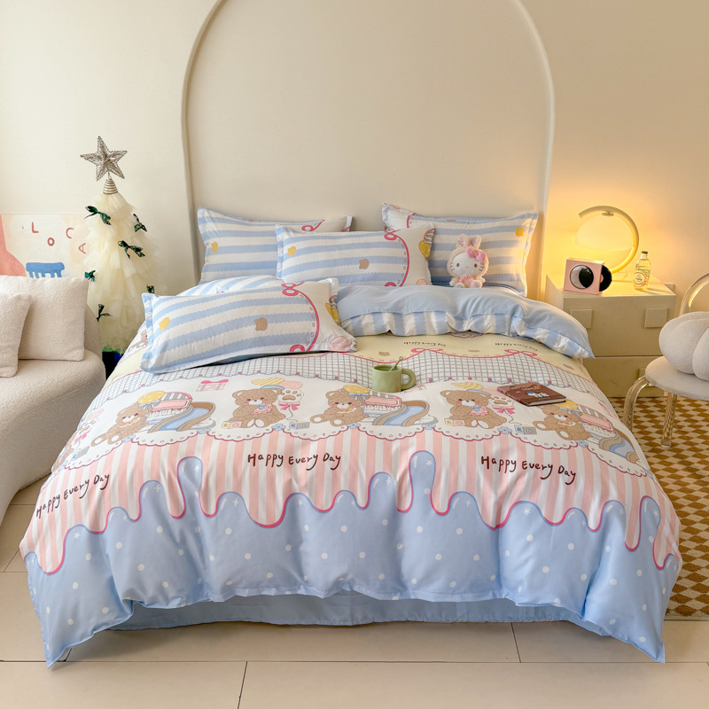 Детский комплект постельного белья из четырех предметов: махровое белье из хлопка с алоэ вера, милый дизайн, для студентов общежитий, для мальчиков и девочек, комплект из трех предметов.