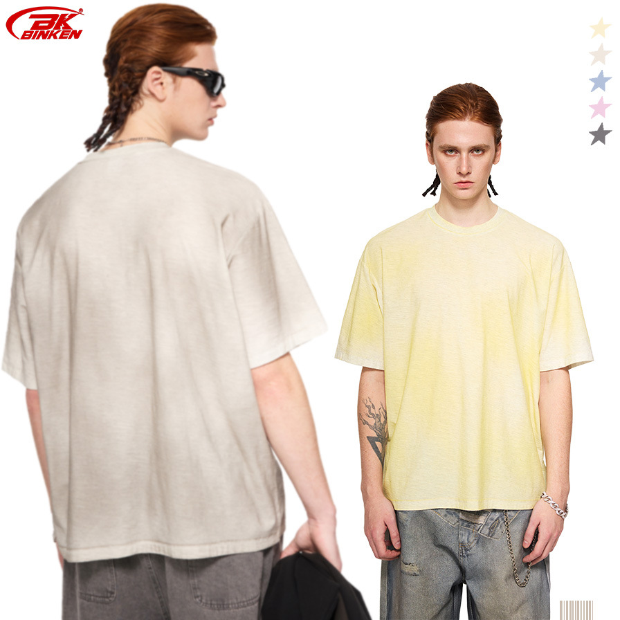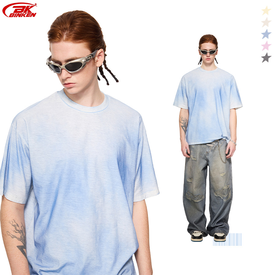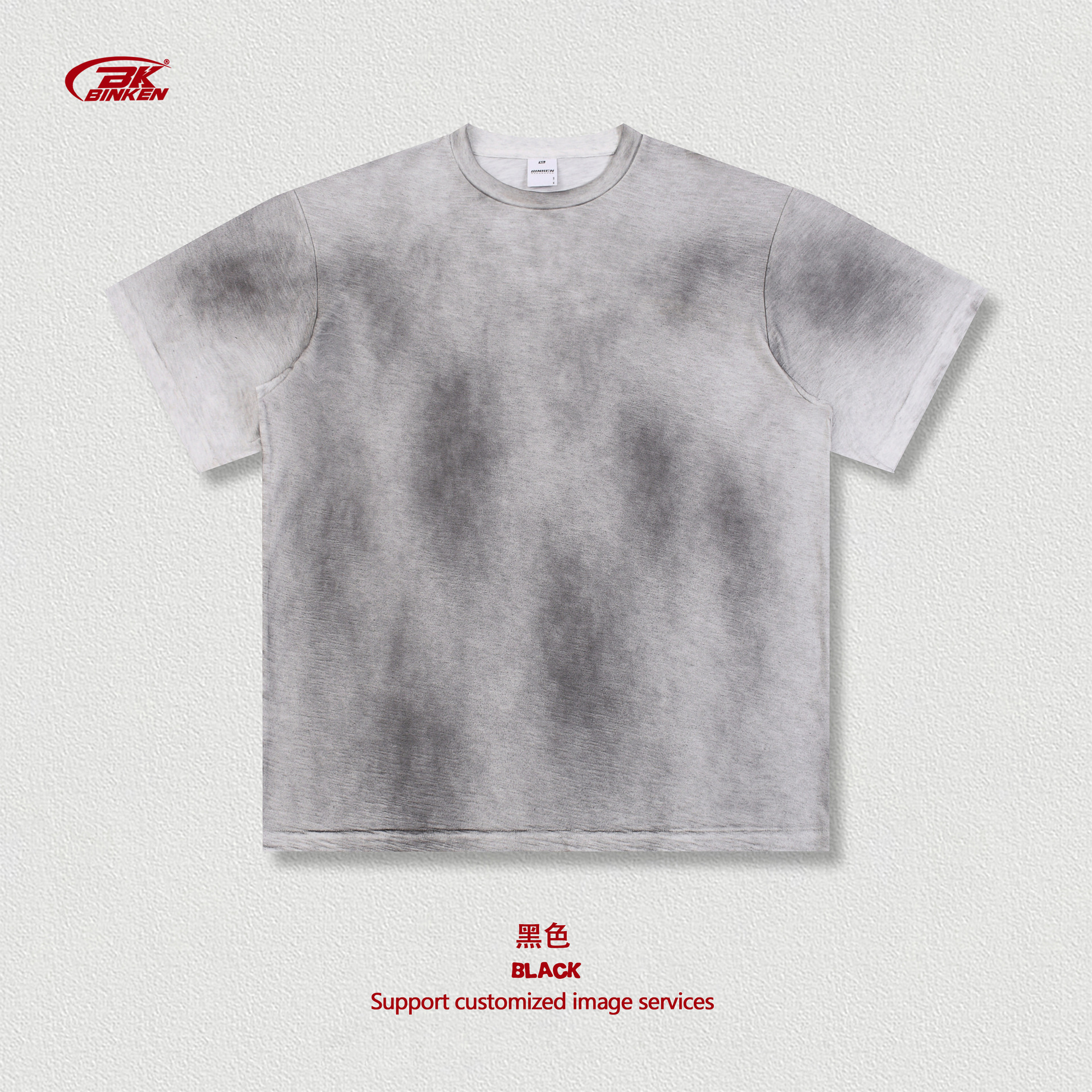 Главная страница > BK мужская футболка из чистого хлопка и льна с короткими рукавами и ручной росписью, 160 г, модная мужская брендовая свободная американская модная футболка