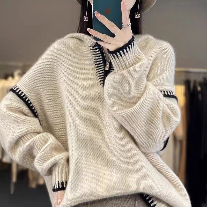 Главная страница > [Счетчик большого размера] молния осень и зима новый трикотаж с капюшоном дизайн свободный повседневный толстый ленивый топ женский