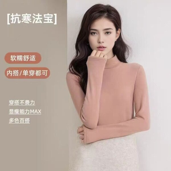 Осенняя и зимняя новая бархатная нижняя рубашка женская половина высокого воротника плюс бархатная утолщение теплая нижняя одежда с длинными рукавами темперамент тонкое тело и холод