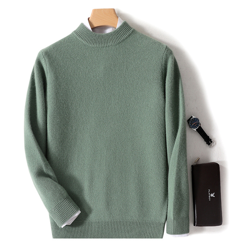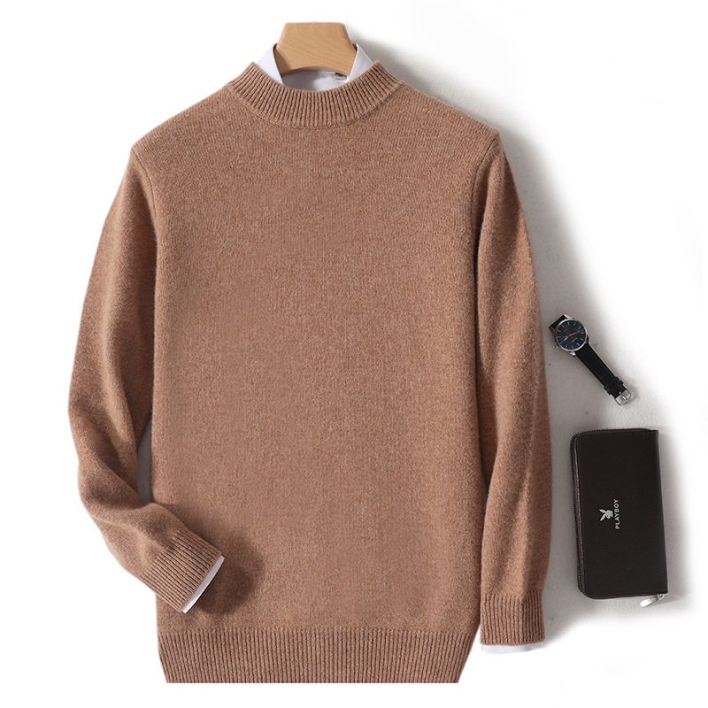 Главная страница > Новый осенне-зимний мужской шерстяной свитер, утолщенный свитер из чистой шерсти с полу-высокой горловиной, базовый кашемировый свитер больших размеров для молодых и средних лет для мужчин