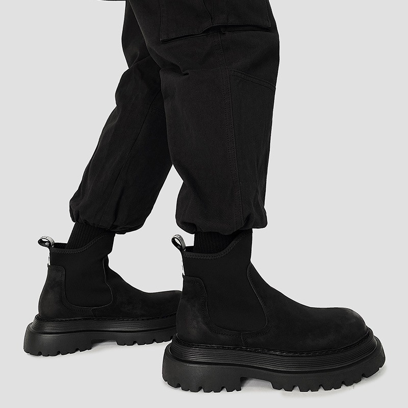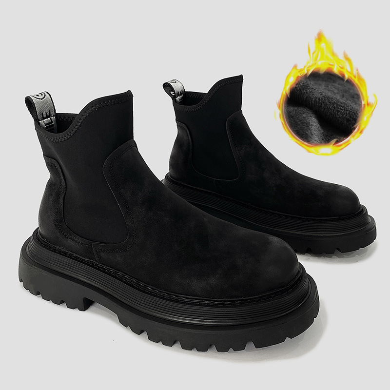 Главная страница > Зимние черные хлопчатобумажные Ботинки Челси на флисовой подкладке, зимние ботинки, мужские Ботинки Martin в британском стиле, универсальные ботильоны на толстой подошве в стиле ретро