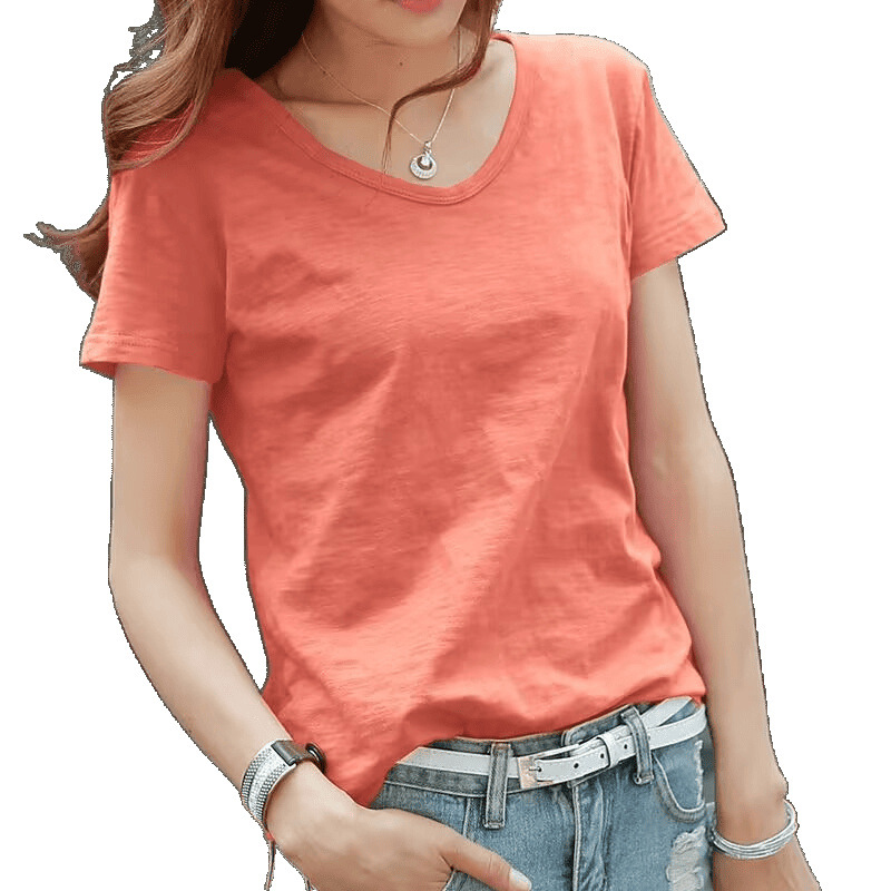 Главная страница > Футболка из бамбукового хлопка, женская футболка с короткими рукавами и круглым вырезом, v-образным вырезом, летняя новая хлопковая свободная футболка с правым плечом, розовый топ, однотонная футболка
