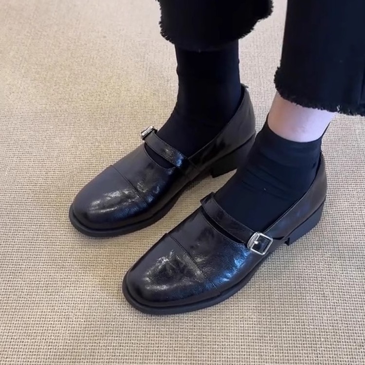 Главная страница > Спотовая версия из коровьей кожи ~ Ретро минималистичный стиль маленькие кожаные туфли с круглой головой женские кожаные пряжки