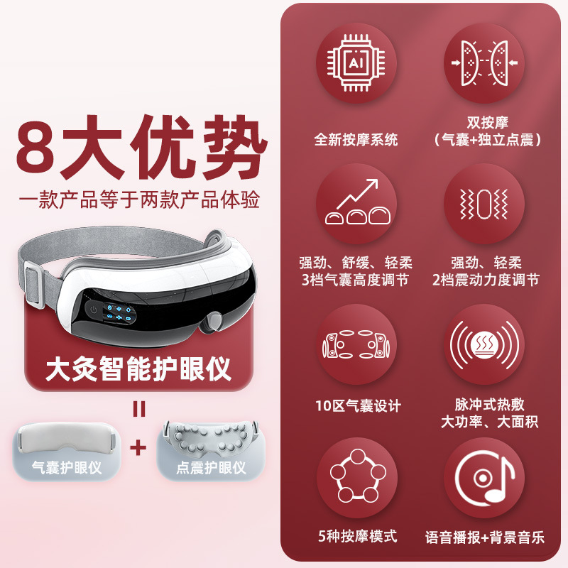 Устройство для защиты глаз, большой массажер для глаз для прижигания, модернизированный горячий компресс с воздушной подушкой для успокоения уставших глаз, массажер для глаз