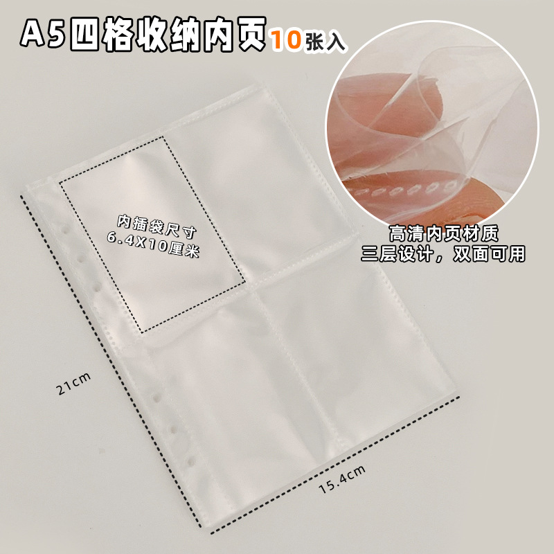 A5 3-дюймовая внутренняя страница с 4 ячейками (10 листов)