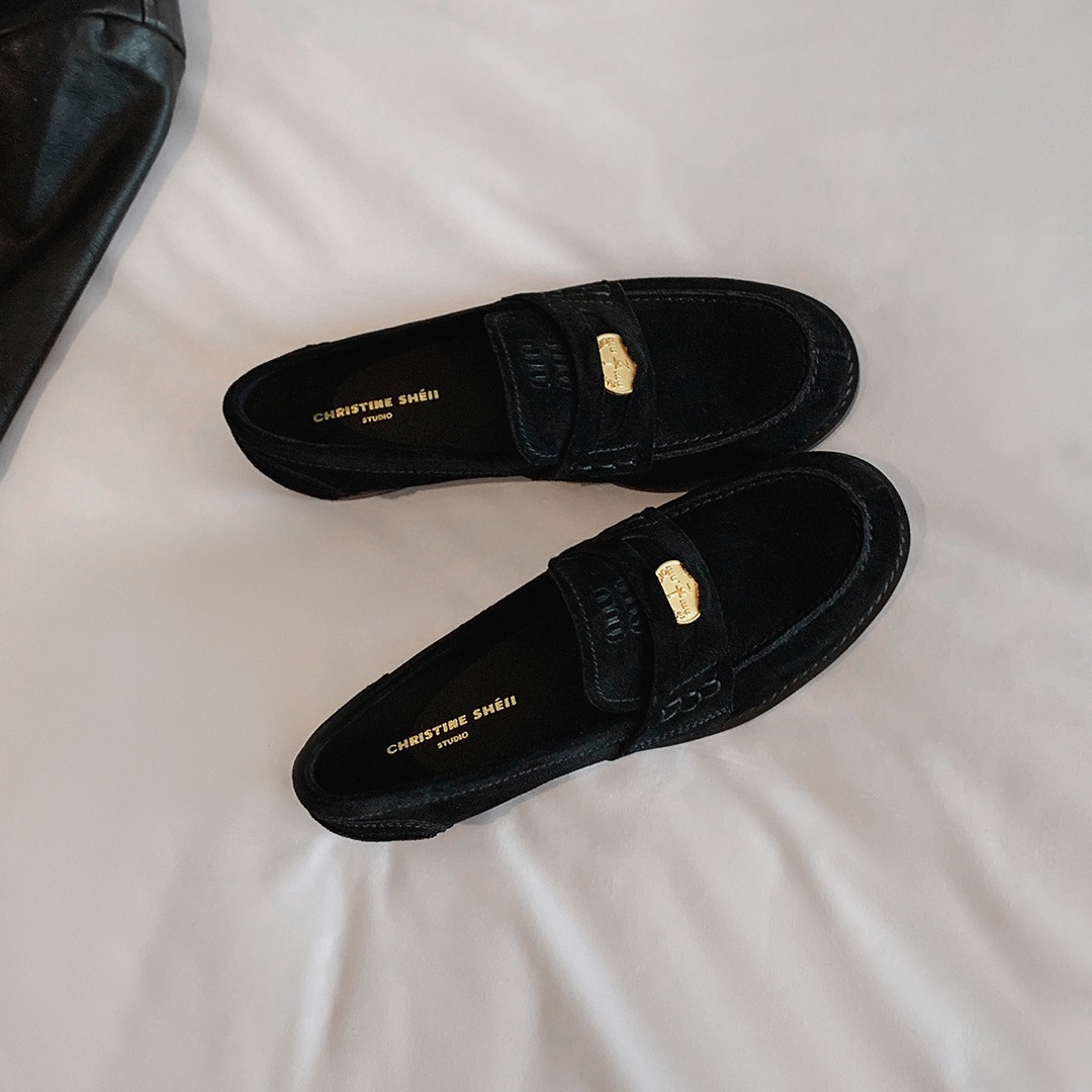 Главная страница > 【В том же стиле, что и у семьи Су】Стильные ~ Женские повседневные кожаные лоферы Amiu без застежек, на плоской подошве