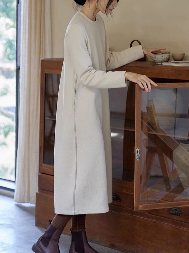 Главная страница > Новое осеннее платье 2025 года, элегантное, из текстурированного воздушного хлопка 40S, средней длины, в стиле свитшота, утолщенное.