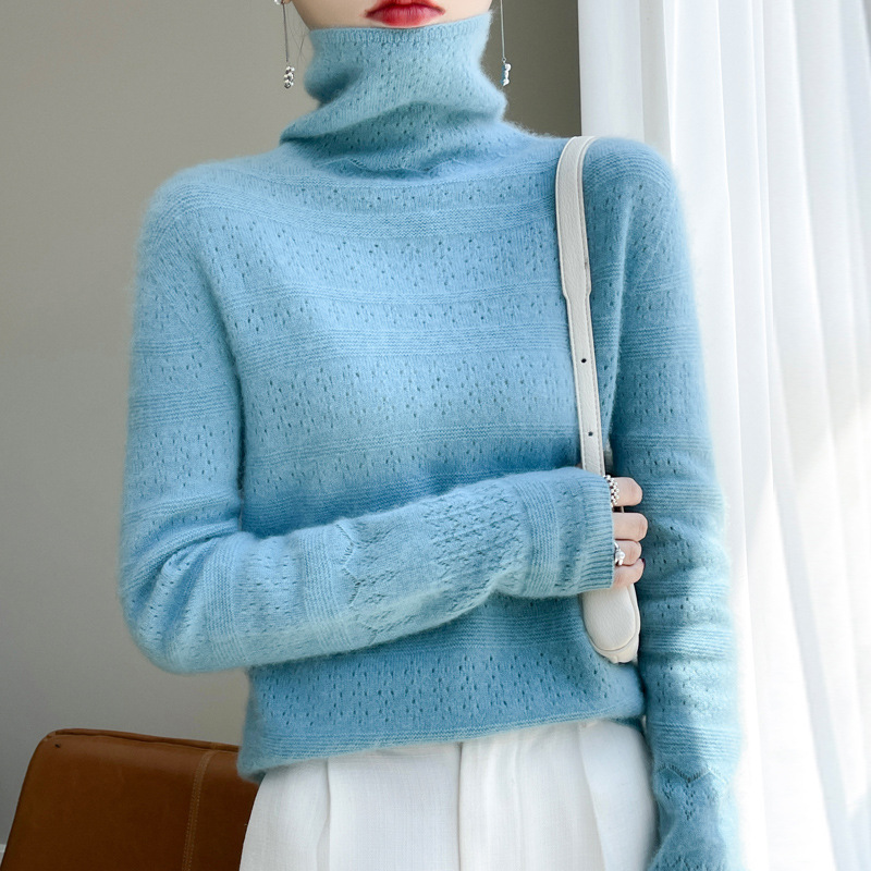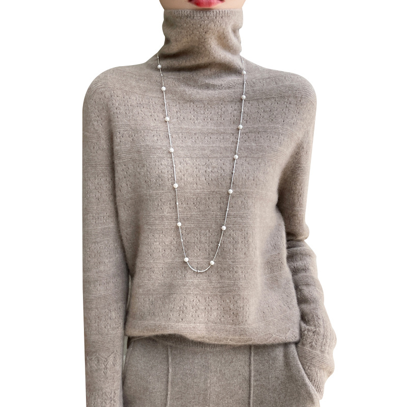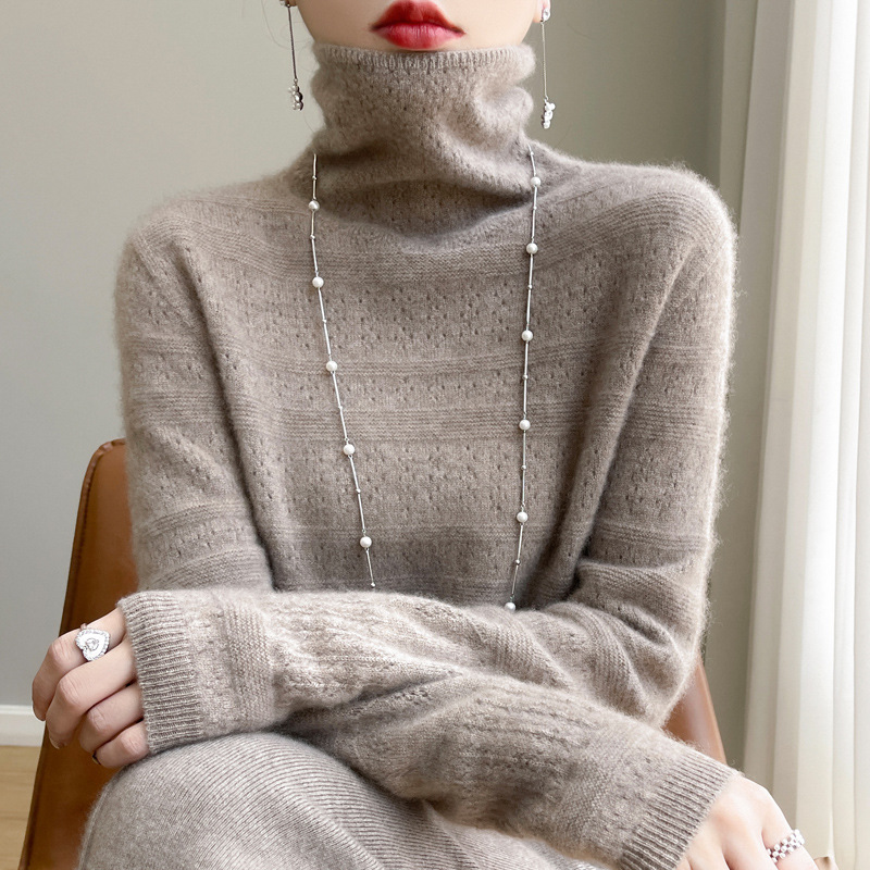 Главная страница > Элитный женский свитер из шерстяной смеси с высоким воротником, новый короткий фасон с ажурной вязкой для осени и зимы 2025 года.