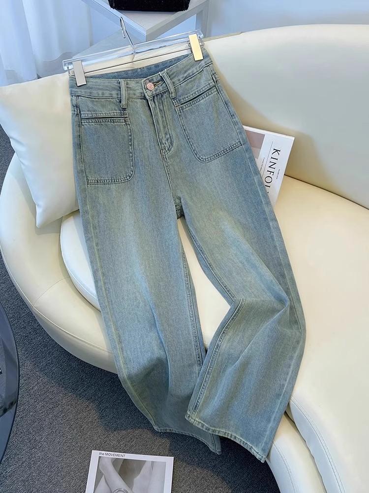 Широкие джинсы детские ранние весенние платья новый весенний и осенний маленький узкий вариант с высокими свободными прямыми брюками