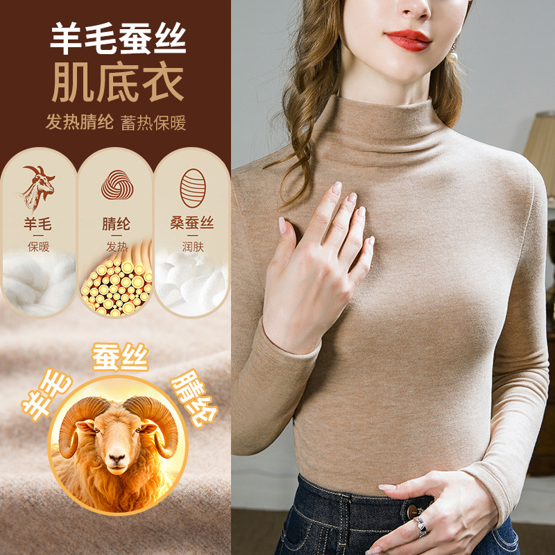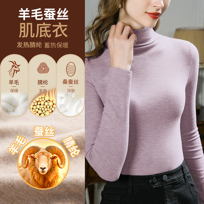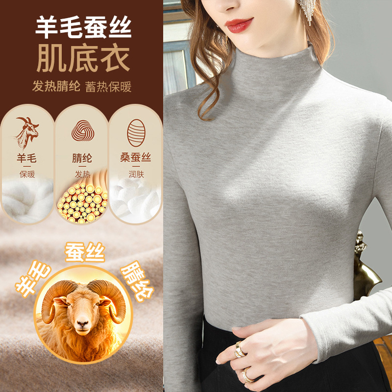 Женская термофутболка из шерсти и шелка, новинка осени-зимы 2025, женское нижнее белье, утепленный и теплый топ, женская футболка на флисовой подкладке.