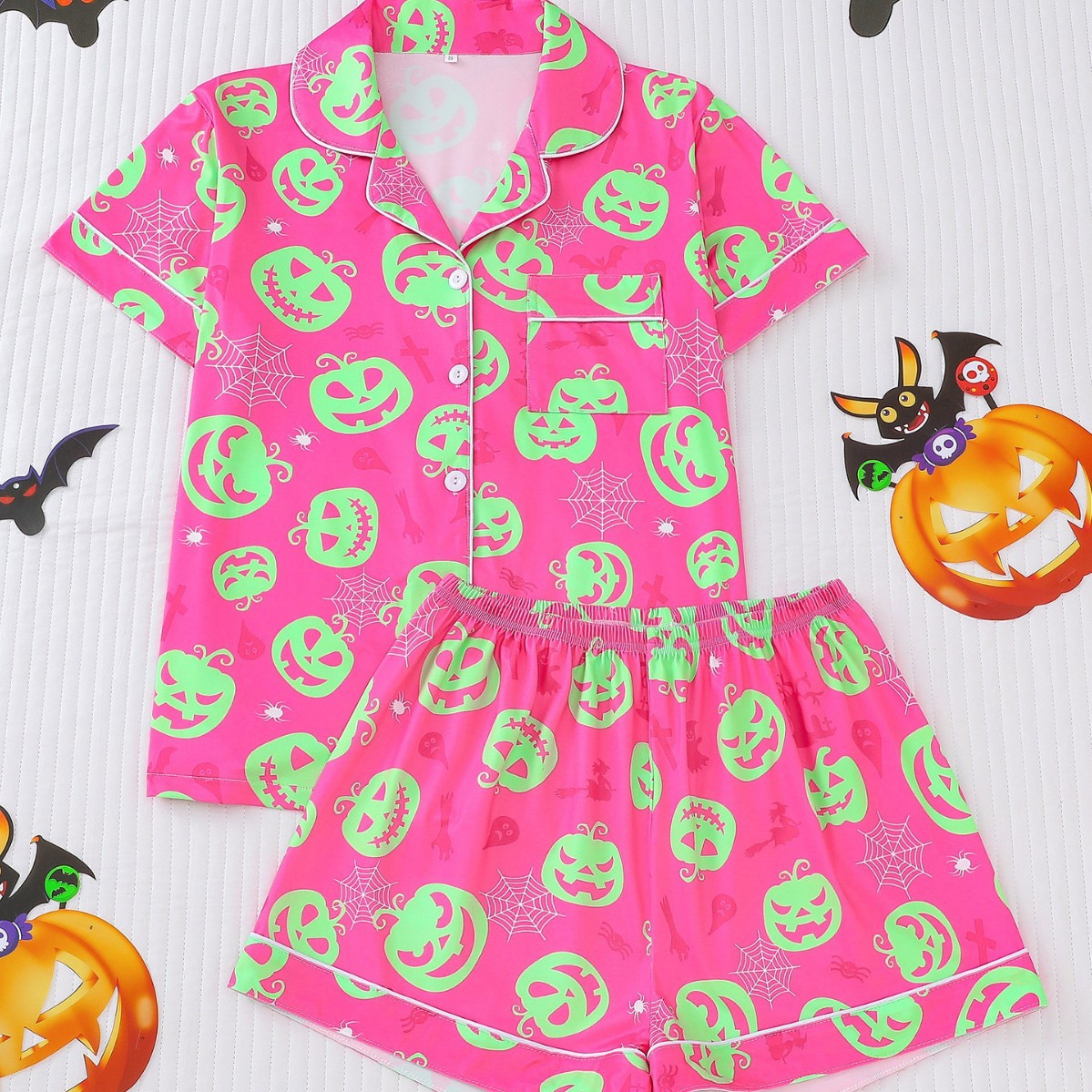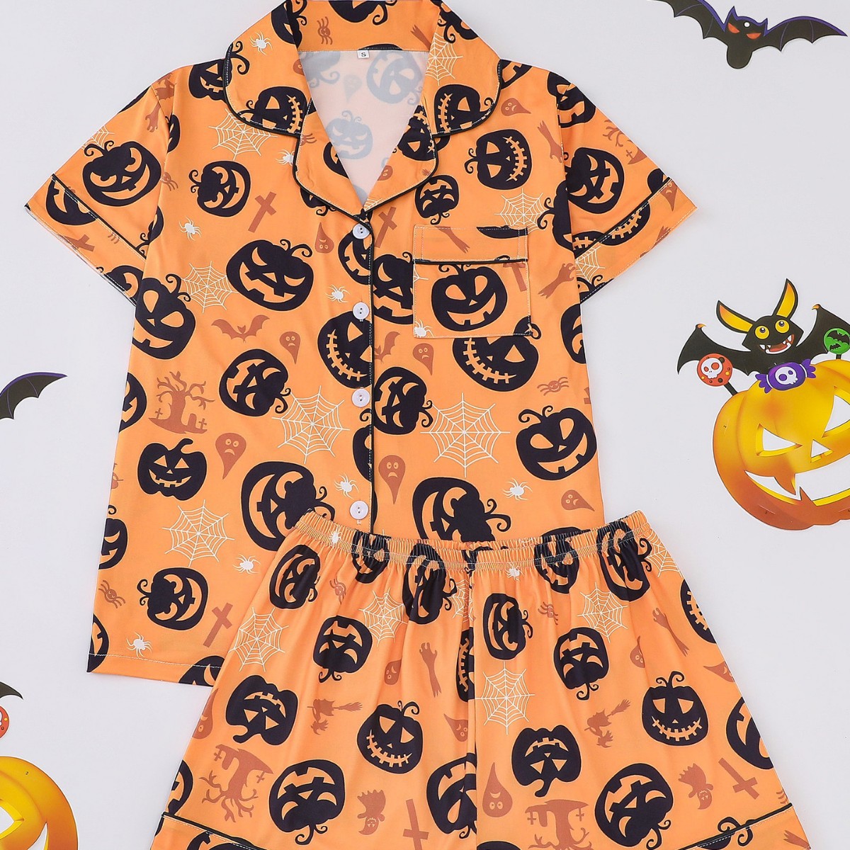 Главная страница > Трансграничная внешняя торговля, женские шорты с короткими рукавами на Хэллоуин, четырехсезонный пижамный комплект, кардиган с лацканами, домашняя одежда, свободная и удобная