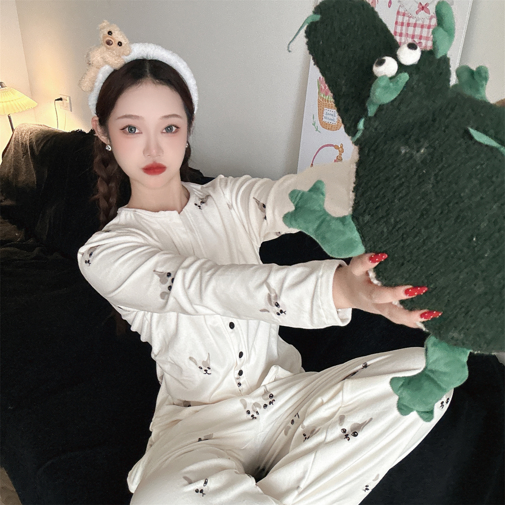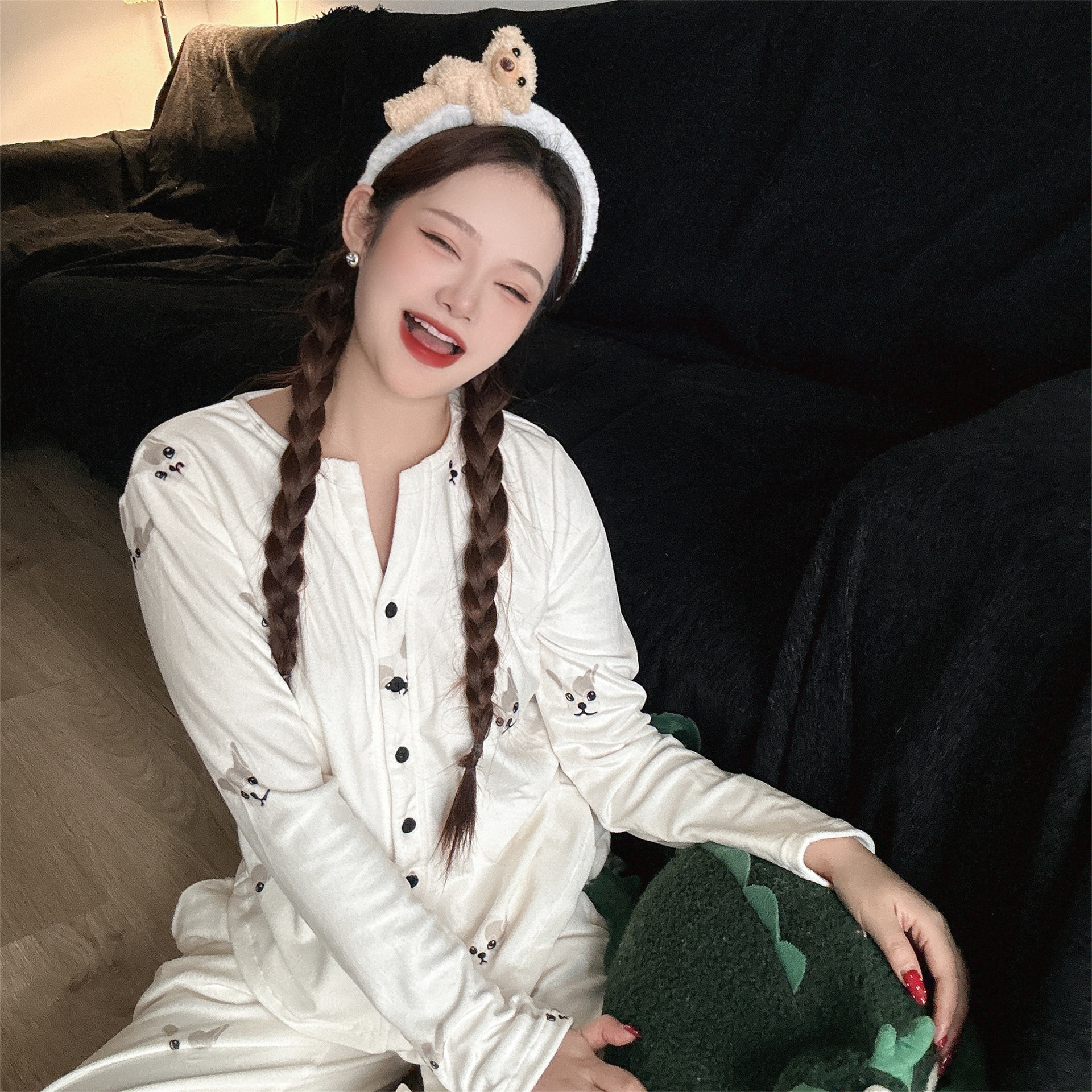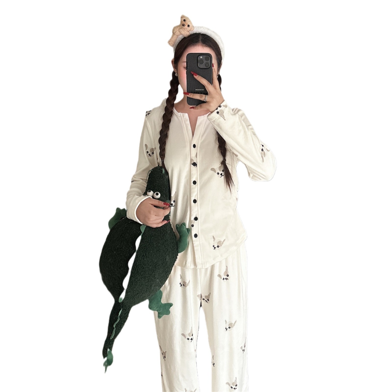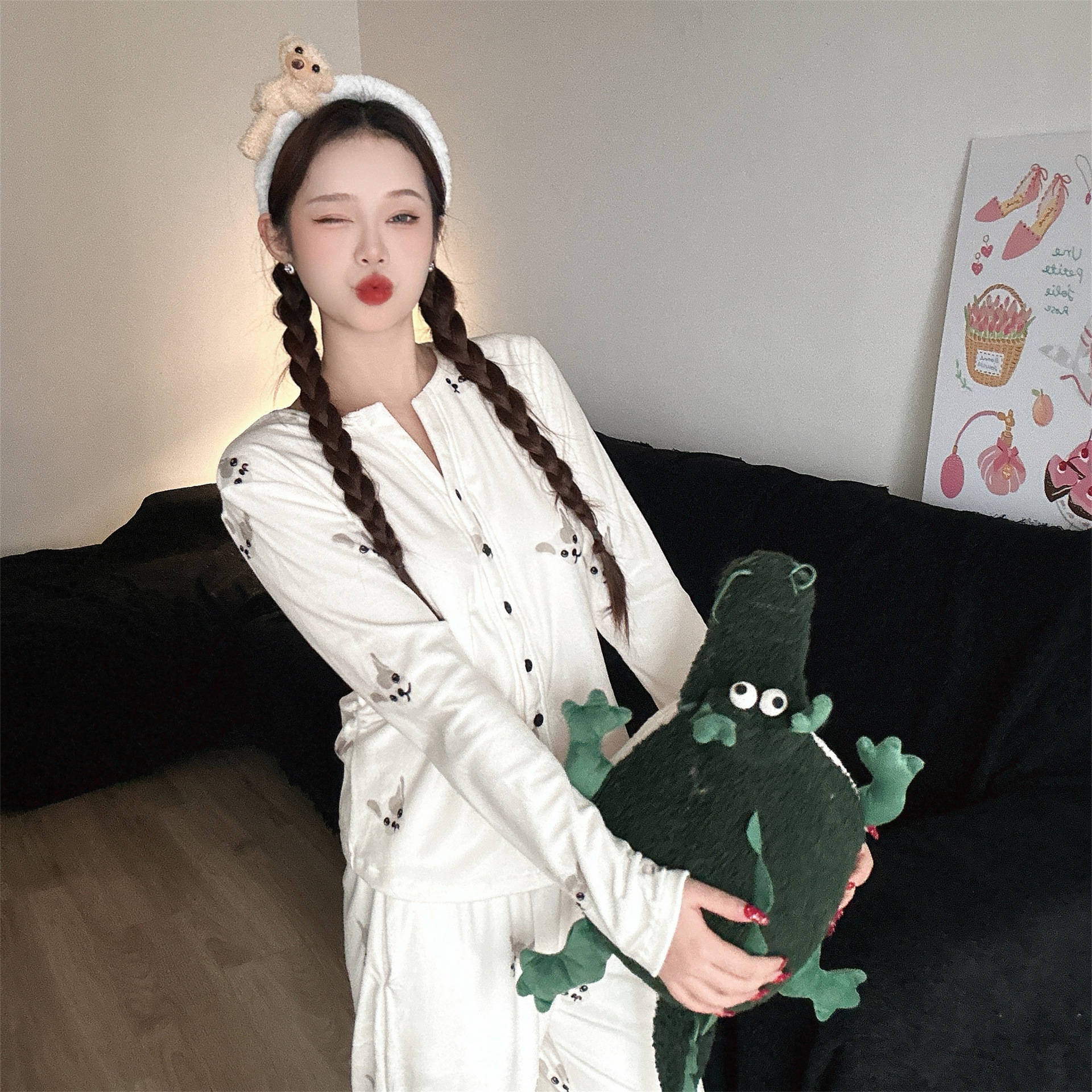 Главная страница > YASE【Французский бульдог】25 Новинка осени/зимы: Простой повседневный домашний комплект для женщин из вельвета с принтом маленькой собаки
