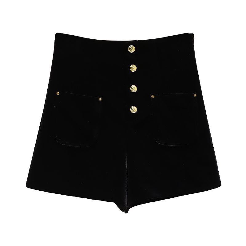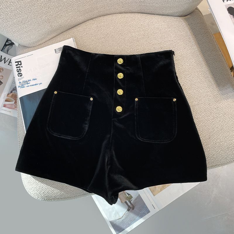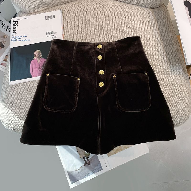 Шорты женские вельветовые в стиле Chanel, новая модель осень-зима 2025, однобортные, с завышенной талией, утягивающие, А-силуэт, широкие штанины, шорты-брюки.