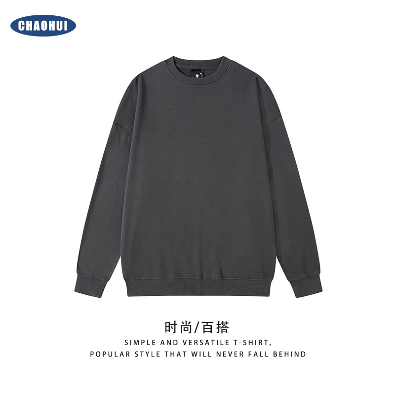 Мужская толстовка из чистого хлопка с заниженной линией плеча и круглым вырезом, свободный тонкий крой, в стиле студенческой моды для пар, однотонная, полностью хлопковая, с длинным рукавом, Гуанчжоу.