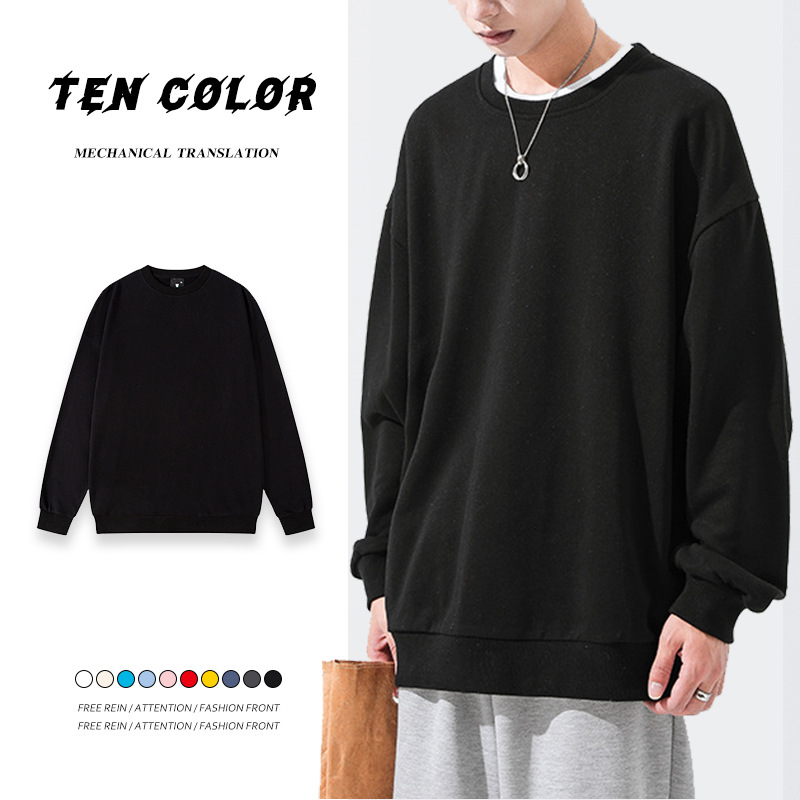 Главная страница > Мужская толстовка из чистого хлопка с заниженной линией плеча и круглым вырезом, свободный тонкий крой, в стиле студенческой моды для пар, однотонная, полностью хлопковая, с длинным рукавом, Гуанчжоу.