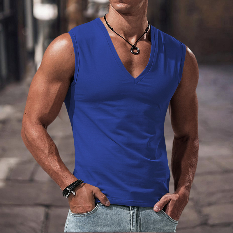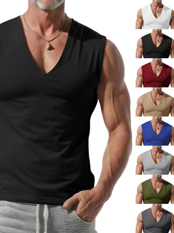 Главная страница > Трансграничный электрический бизнес летний мужской сплошной цвет большой V-образный вырез свободный жилет влагопоглощающий быстрый сухой мужской спортивный жилет