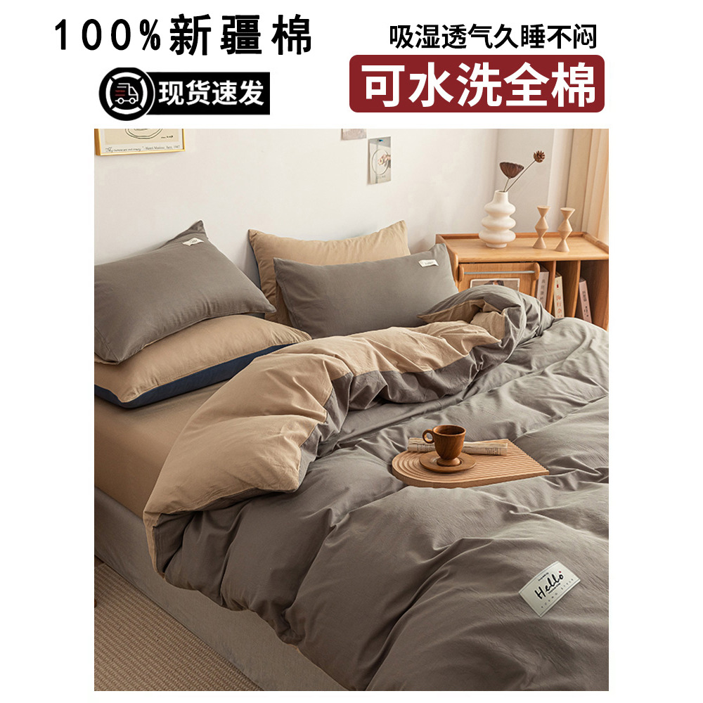 Главная страница > Комплект постельного белья из чистого хлопка, четыре предмета, новинка 2025 года, однотонный, полностью хлопковый: пододеяльник, простыня, натяжная простыня, покрывало; комплект постельного белья для общежития, три предмета.