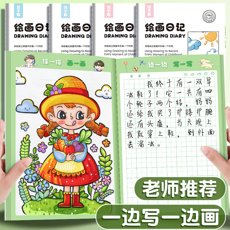 Главная страница > A5 Живопись Дневник B5 Мультфильм Учащиеся начальной школы рисуют картинки и пишут книги для детей, пиньинь, дневник Тянь Цзигэ