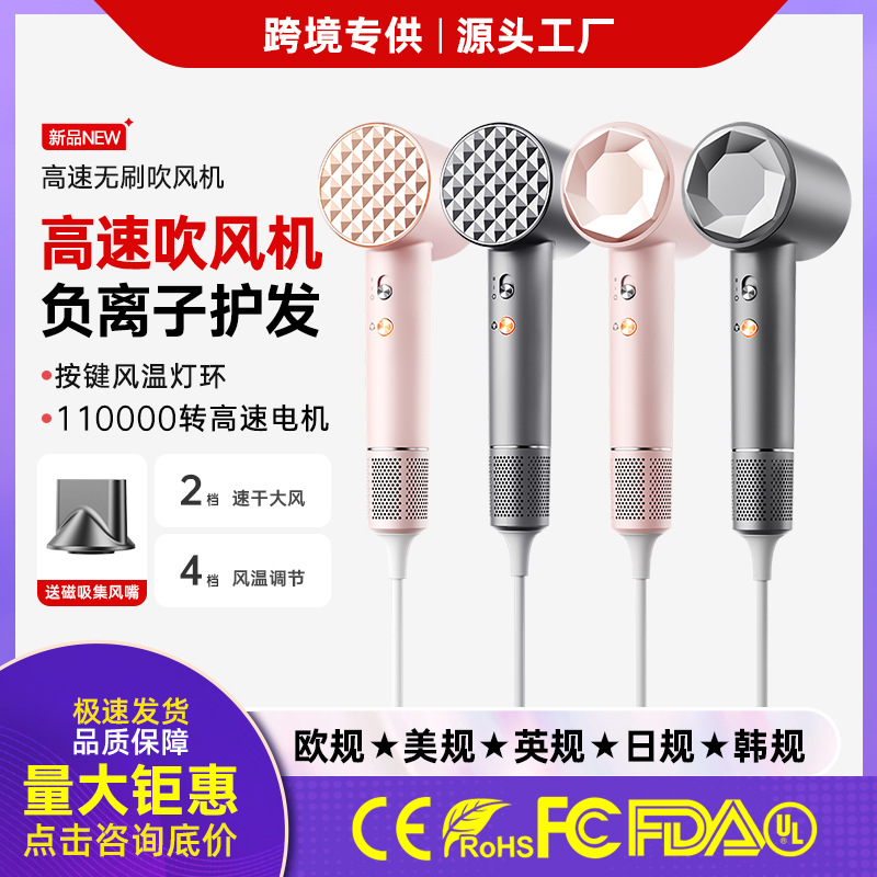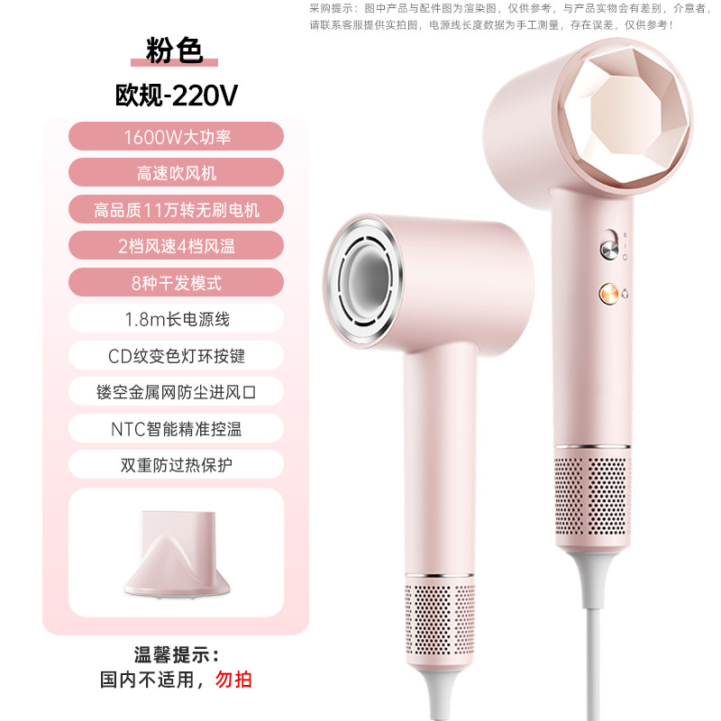[Нейтральный европейский стандарт] K2-Pink-1600W + высокоскоростной бесщеточный двигатель 110 000 об/мин + кнопочный индикатор температуры воздуха + магнитное воздушное сопло-220 В