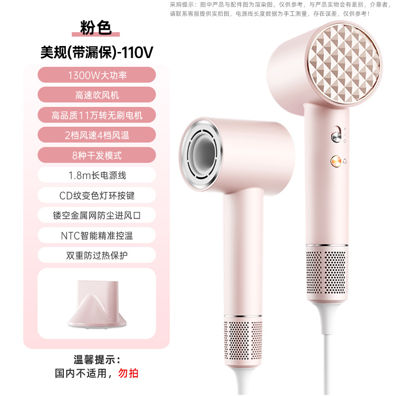 [Нейтральный американский стандарт (с защитой от утечек)] K1-Pink-1300W+высокоскоростной бесщеточный двигатель 110 000 об/мин+кнопочный индикатор температуры воздуха+магнитное воздушное сопло-110 В