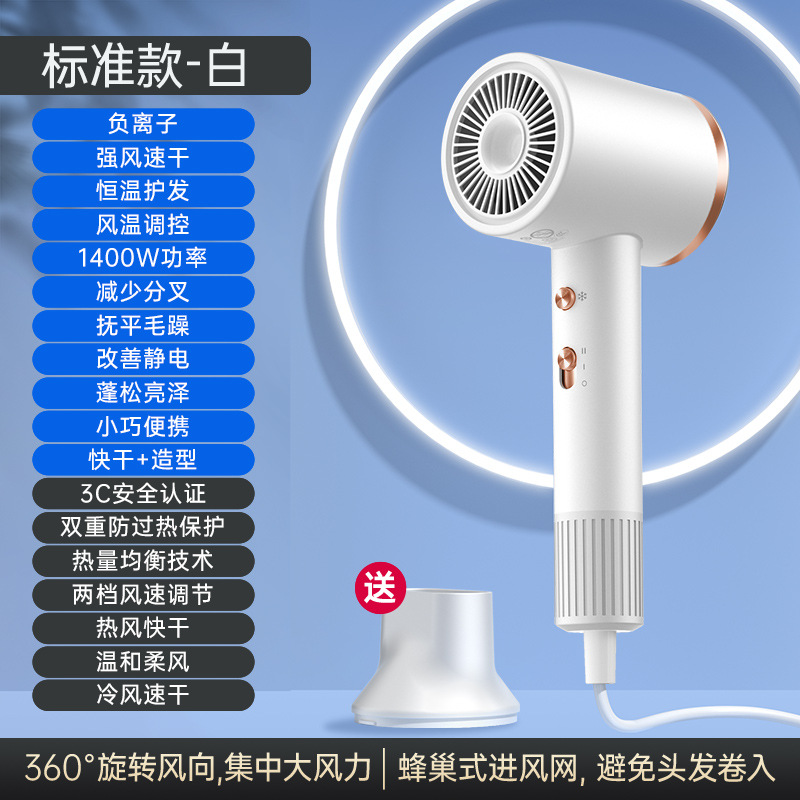 [Нейтральный европейский стандарт] D1-белый-отрицательный ион+1400 Вт+высокоскоростной матовый двигатель 20 000 об/мин+воздушная насадка с пряжкой-220 В