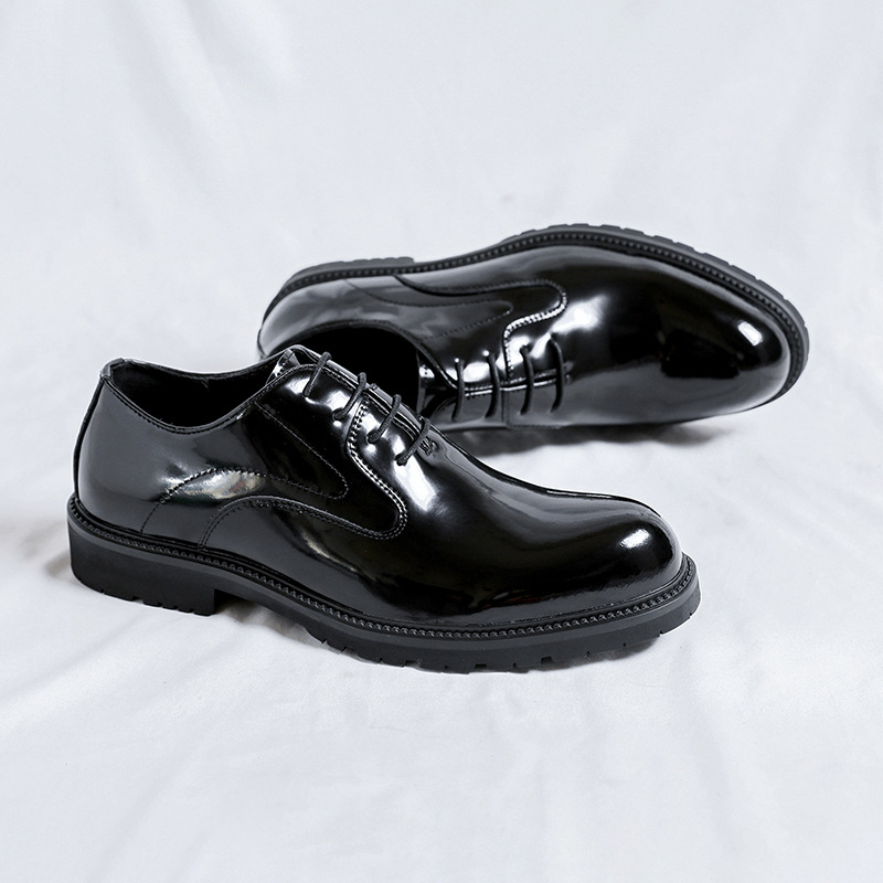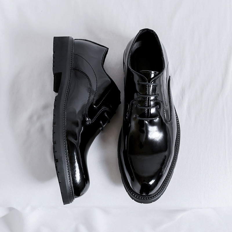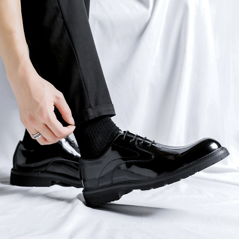 Главная страница > 2023 мужские деловые повседневные кожаные туфли из лакированной кожи с широкими штанинами на толстой подошве, глянцевые модные туфли дерби 8252-R