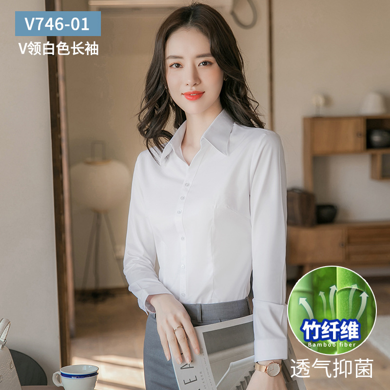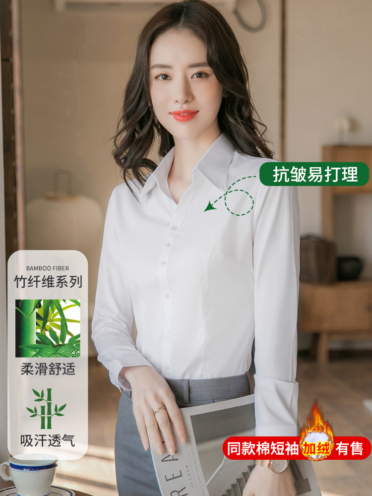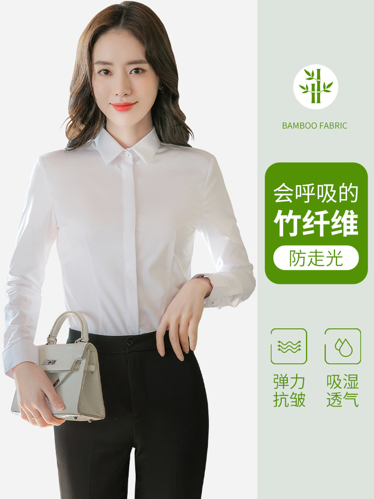 Главная страница > Белая женская рубашка из бамбукового волокна, профессиональная, с длинным рукавом, для работы, не требует глажки, не мнется, эластичная, приталенная, формальная, оптом