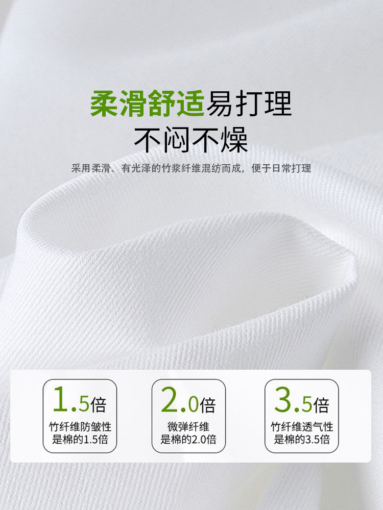 [Короткие рукава из бамбукового волокна] Белый квадратный воротник (дышащий и антибактериальный).