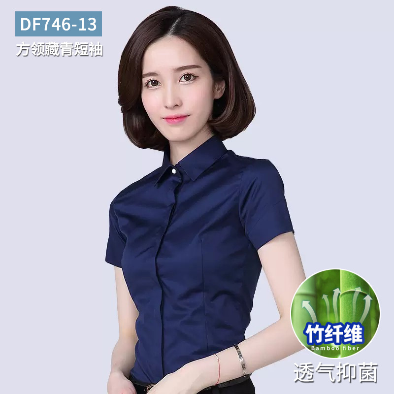 [Короткие рукава из бамбукового волокна] Темно-синий квадратный воротник (дышащий и антибактериальный).