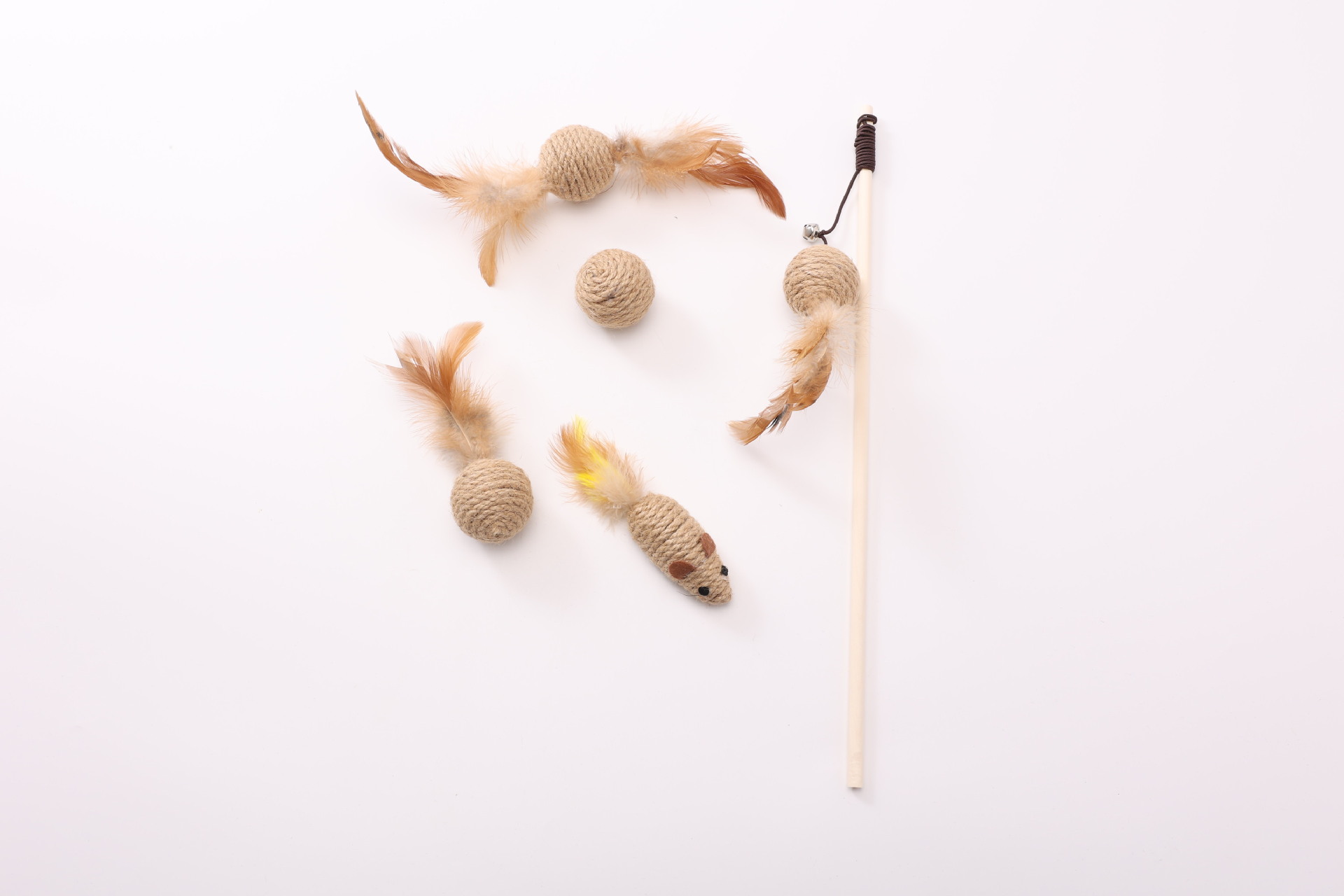Сплошной цвет костюм из конопляной веревки Self-Hi Bite Деревянный столб Кошачья дразнящая палка Двуглавая перо Конопляная веревка Мяч Конопляная веревка Мышь Конопляная веревка Круглый торт