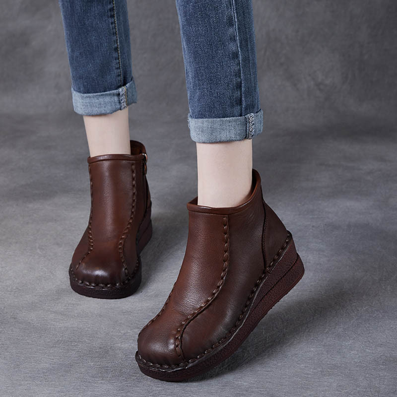 Главная страница > С одной осенью и зимой новый национальный стиль ретро мягкий нижний наклон шорт сапоги с толстой подошной средней каблукой женские сапоги зимние бархатные ватные сапоги