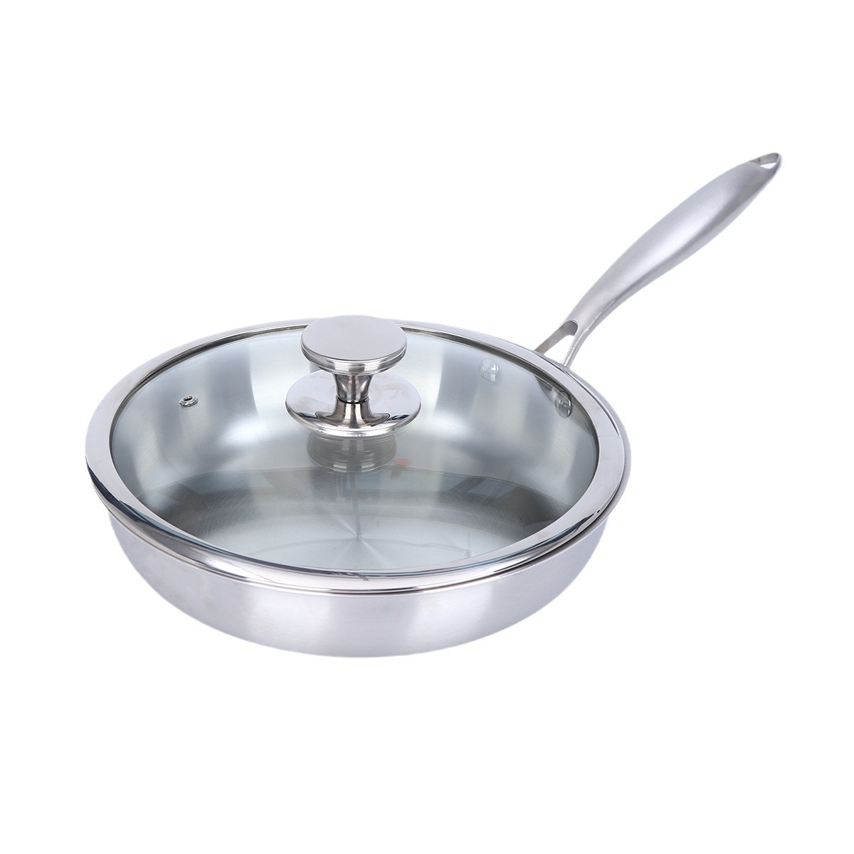 Главная страница > Новая утолщенная трехслойная стальная сковорода без покрытия из нержавеющей стали для жарки стейков с антипригарным покрытием, Универсальная круглая сковорода от производителей