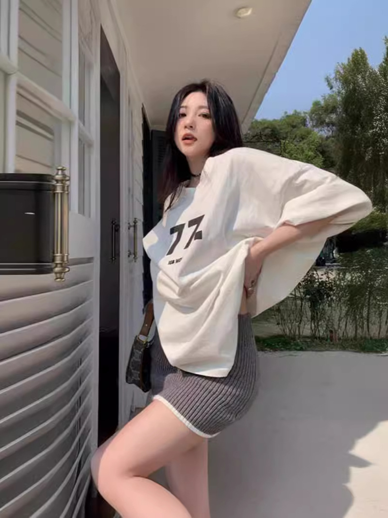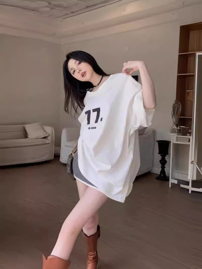 Главная страница > Свободная женская футболка с короткими рукавами, лето 2021, новинка большого размера, американский белый топ средней длины в ленивом стиле 40389