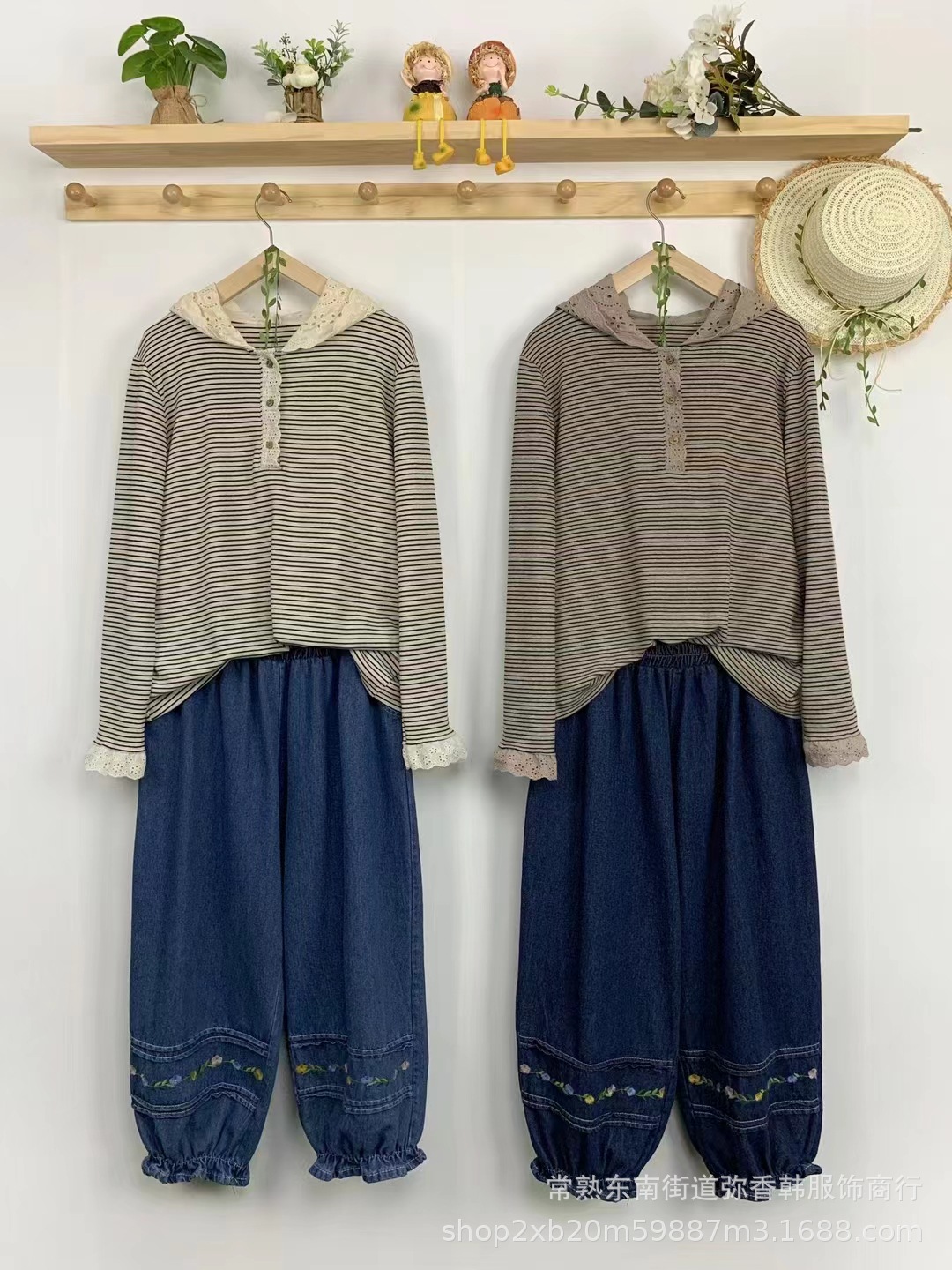 843476 футболка в стиле мори с капюшоном, полосатая футболка с капюшоном и длинными рукавами в стиле мори с тремя пуговицами