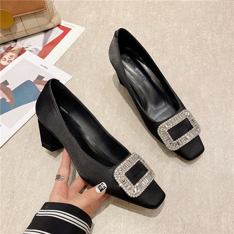 Главная страница > Туфли женские на квадратном каблуке, весна 2025, новинка, массивный каблук, со стразами, неглубокий вырез, средний каблук, квадратный носок, модель 8829