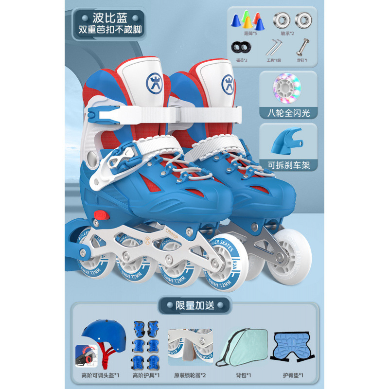 Новичок · Защита от падения [Синий · Двойная пряжка без растяжений ног] Защита шлема + рюкзак + блокировка колеса
