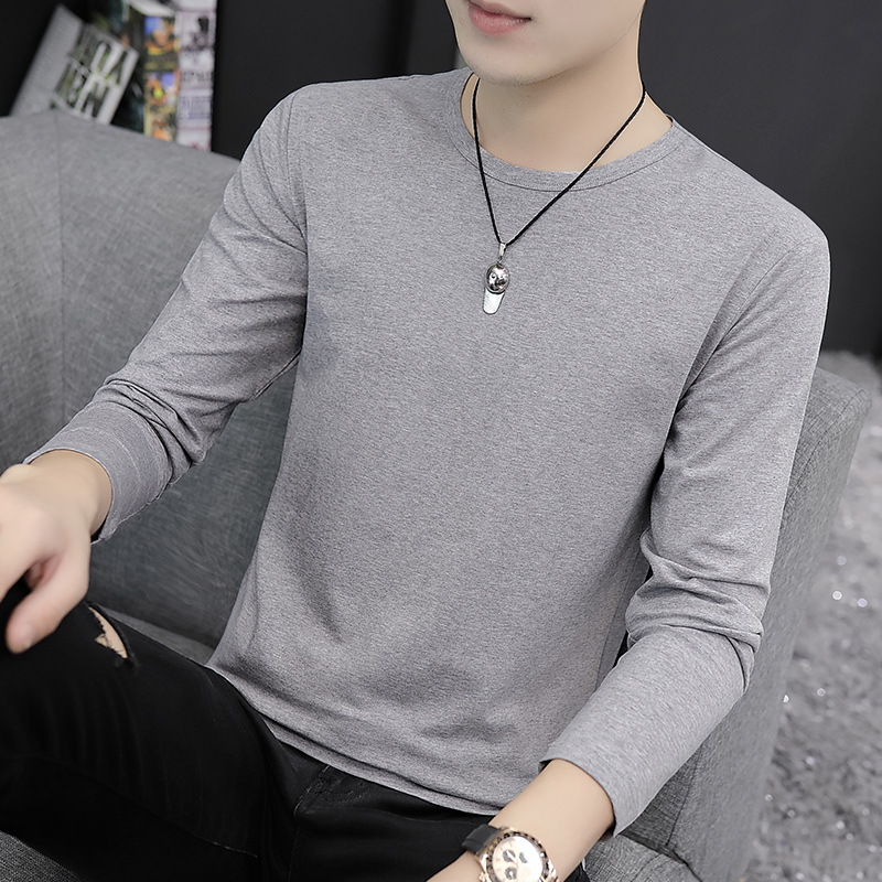 Главная страница > Осенняя Модальная футболка с длинными рукавами, Мужская Базовая рубашка с круглым вырезом и однотонным принтом, Осенний Топ 2023, новая мода