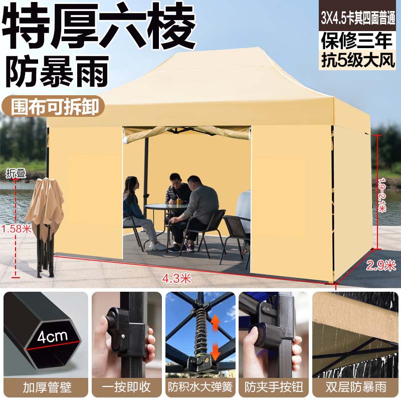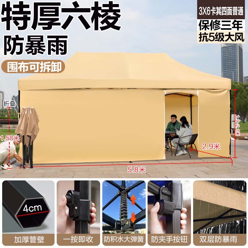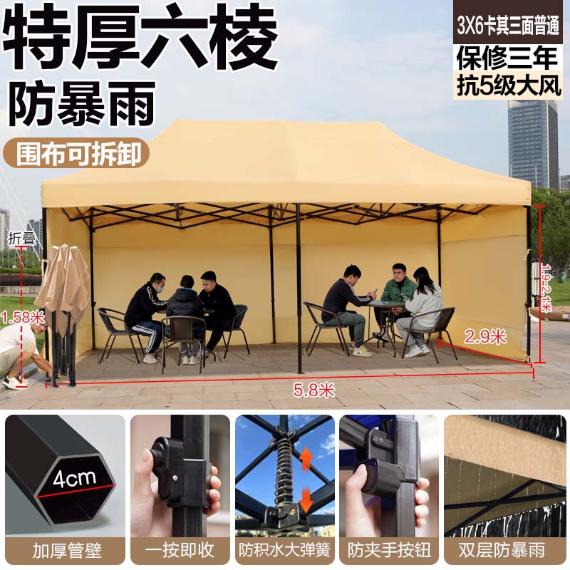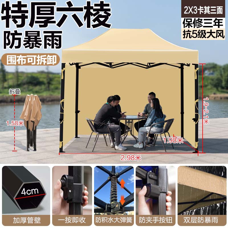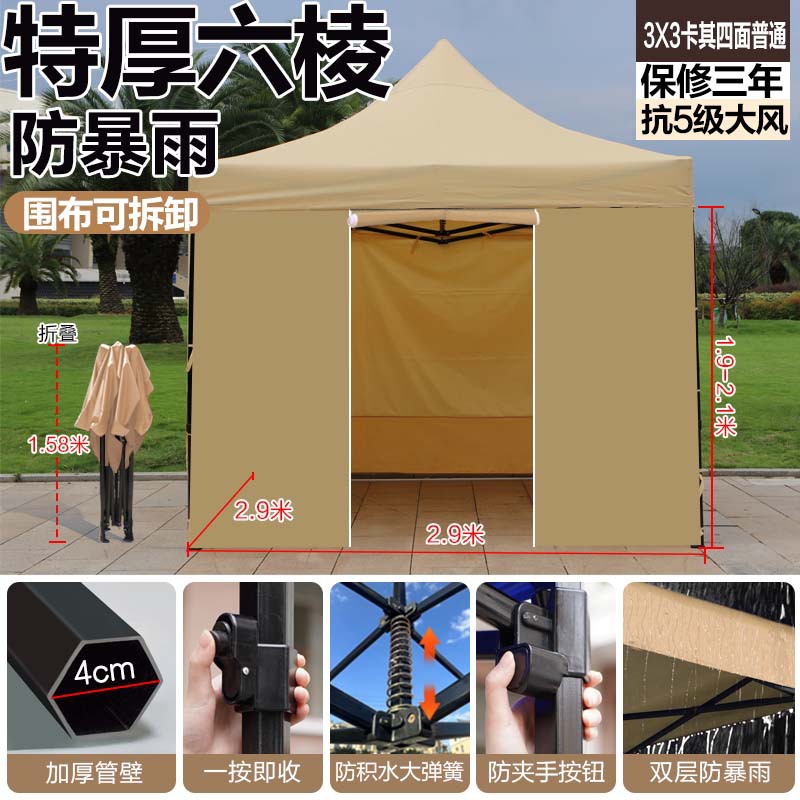 Экстра-толстая и утолщенная черная шестиугольная ткань 3x4,5+3-сторонняя, стиль чистой ткани, цвет хаки [водонепроницаемая и устойчивая к сильному ветру + теплая, съемная + многоцветная на выбор]