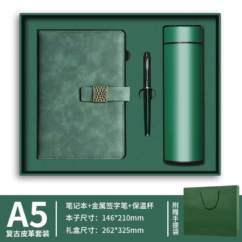 Зеленый блокнот + чашка-термос + подарочная коробка.
