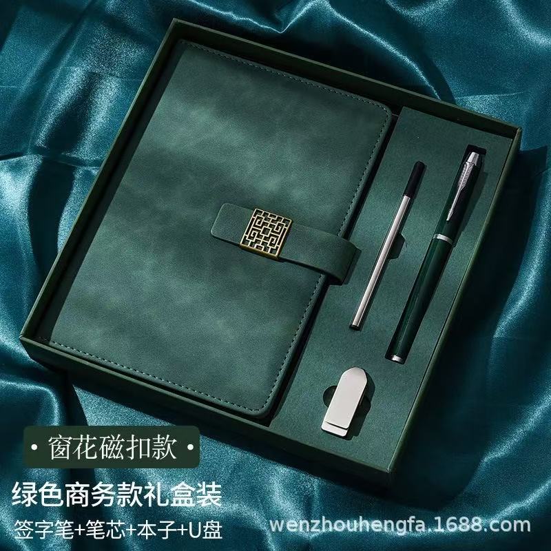 Зеленый блокнот+ручка+подарочная коробка