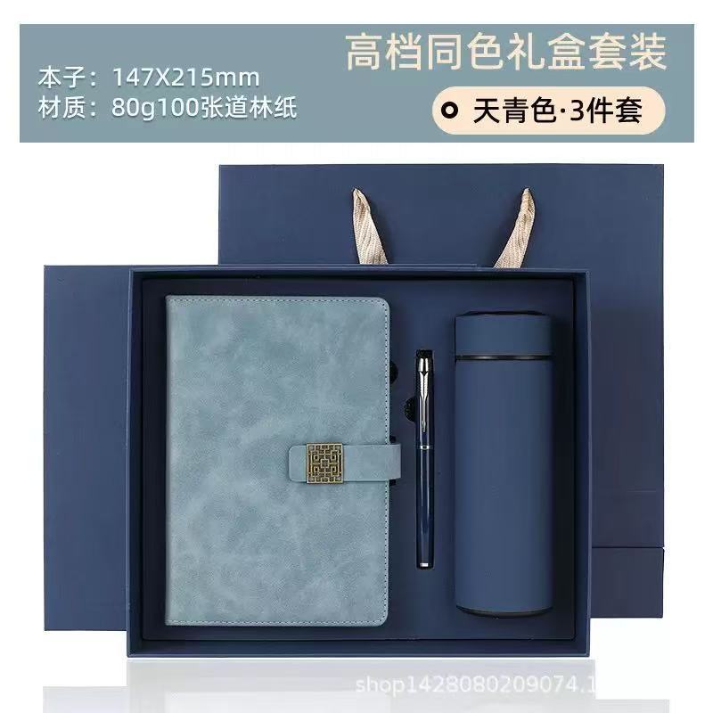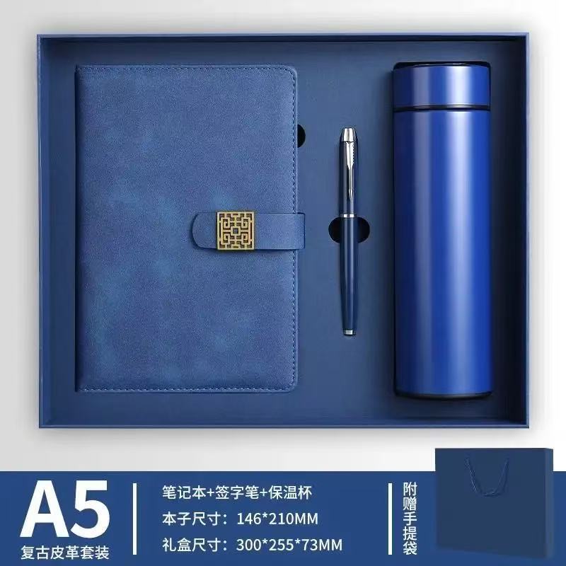 Синий блокнот + чашка-термос + подарочная коробка