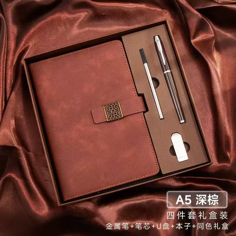 Коричневый блокнот+ручка+USB-диск+подарочная коробка