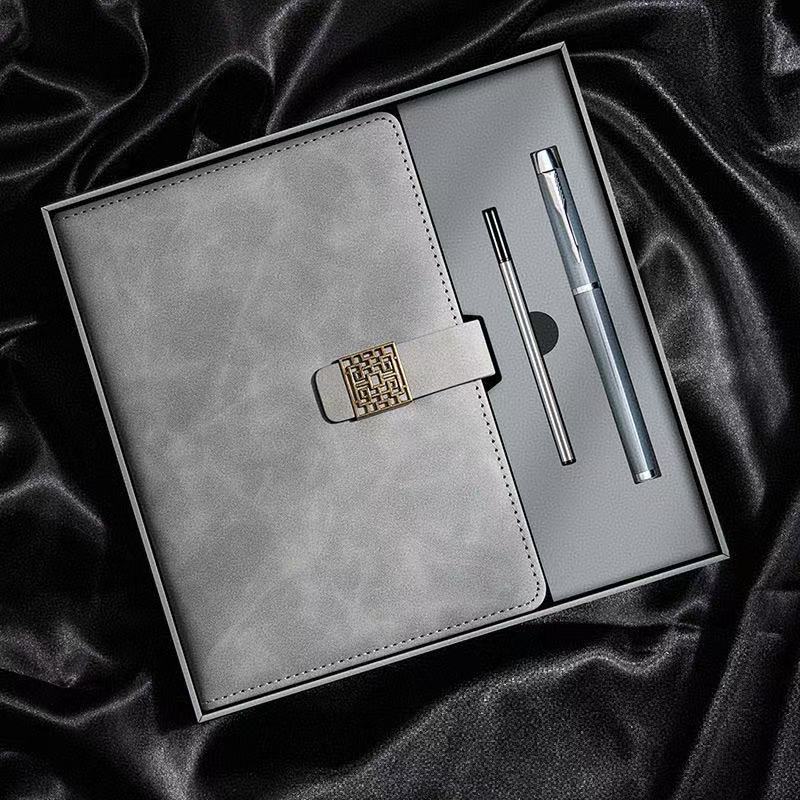 Серый блокнот+ручка+подарочная коробка