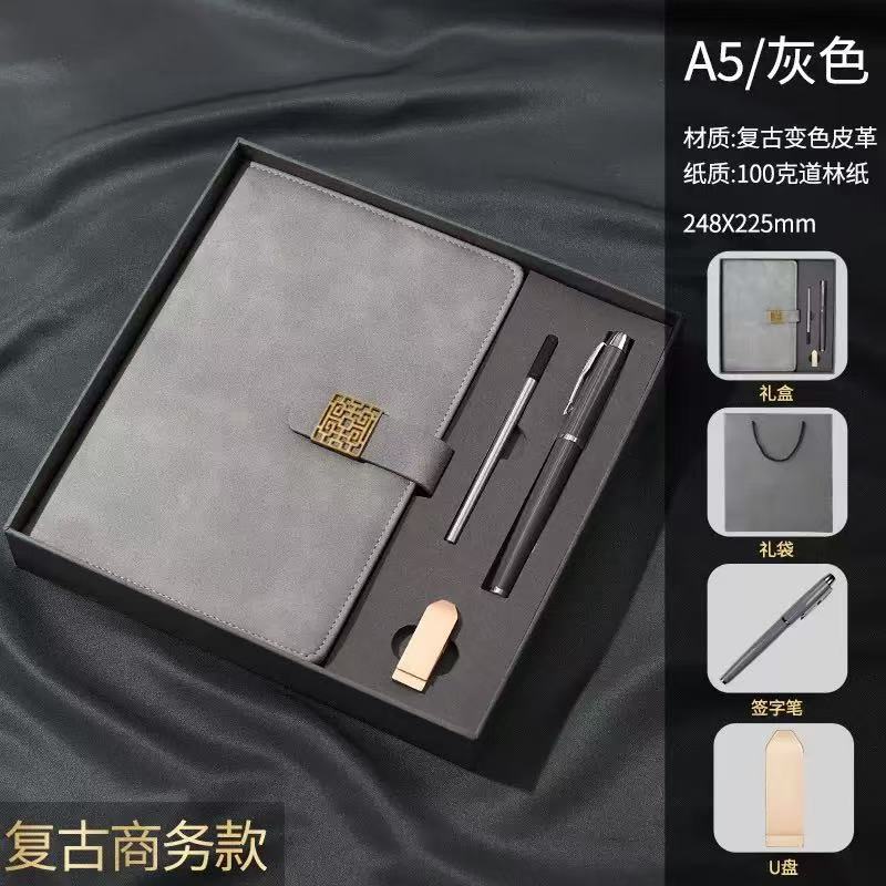 Серый блокнот+ручка+USB-диск+подарочная коробка