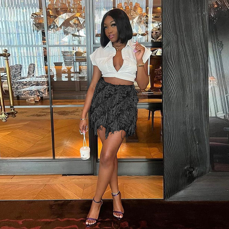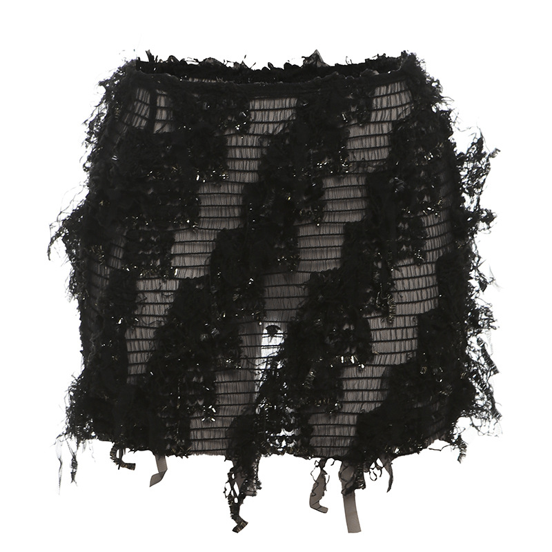Главная страница > Европейский и американский стиль 2024 летняя мода новая личность уличный тренд уличный выстрел в полоску кисточки тонкая юбка бедра женская