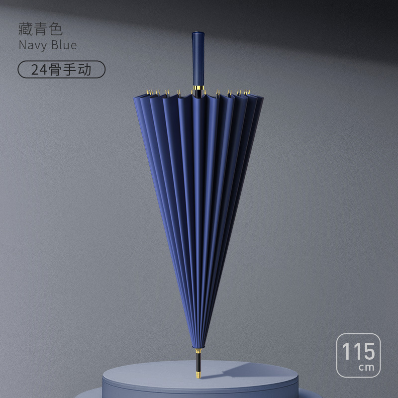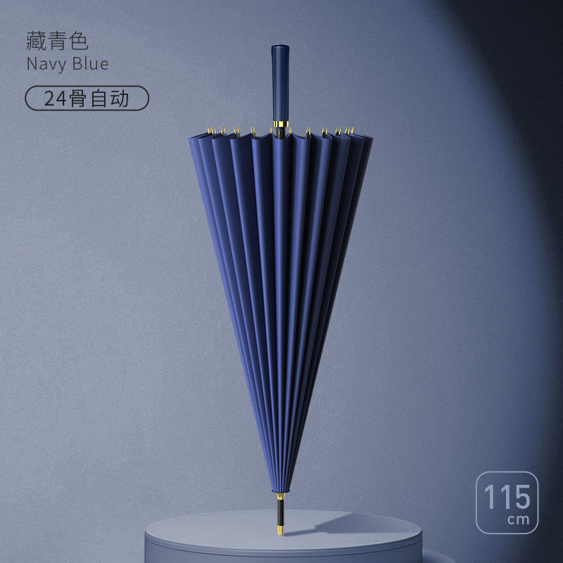 [Автоматический 24 кости] Зонт с длинной ручкой темно-синего цвета